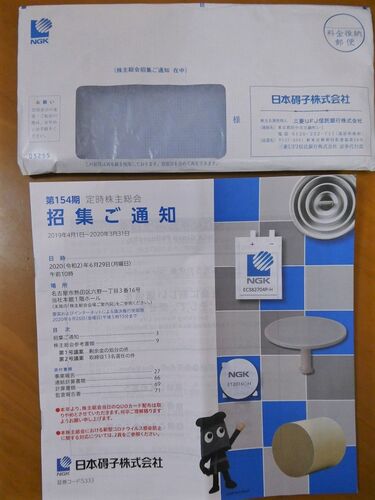日本碍子(5333) ガイシ世界一。セラミックス技術で排ガス用ハニカム等多角化。NAS電池量産。森村グループ ~会社四季報より~ 定時株主総会招集通知が届いた。 2020(令和2)年6月29日(月)午前10時 当社本館1階ホール 名古屋市熱田区六野一丁目3番16…