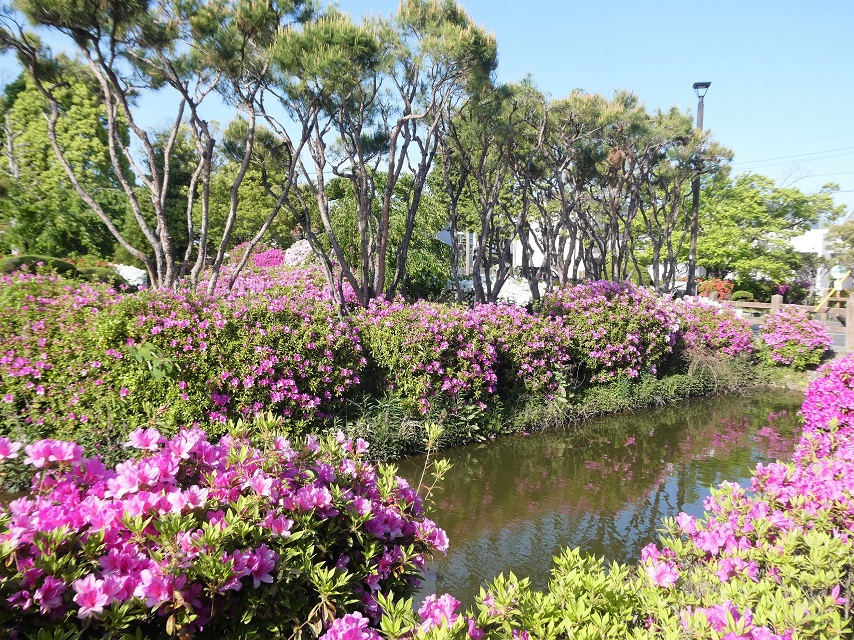 2023-04-23 浅野公園 ツツジ・フジ見ごろ ◎お出かけ(愛知県一宮市) #散歩 #フジ(藤) 浅野公園をお散歩してきた。 愛知県一宮市にある公園。 戦国武将の浅野長政の屋敷跡を大正6年(1917年)に公園にしたとのこと。 公園の外回りには小さなお堀があり、色とりどりのツツジが植えられている。 来週の土日につつじまつりが開催される。 穏やかに晴れた休日の午後、ちょっとフライングした人が三々五々とお散歩している。 ヒトツバタゴも満開。 藤棚のフジも見ごろ。 甘いよい香りがする。