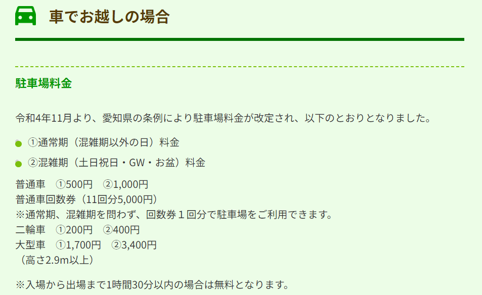 ジブリパークができたので、駐車料金は土日などの混雑期は1,000円/1日。