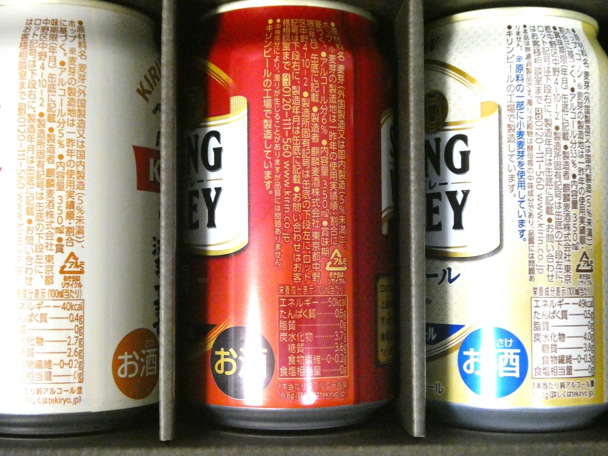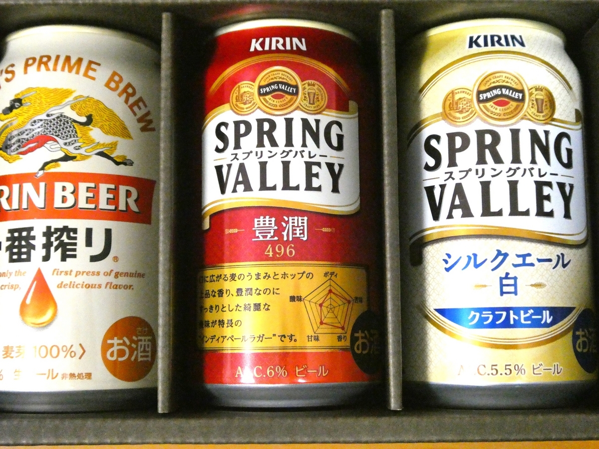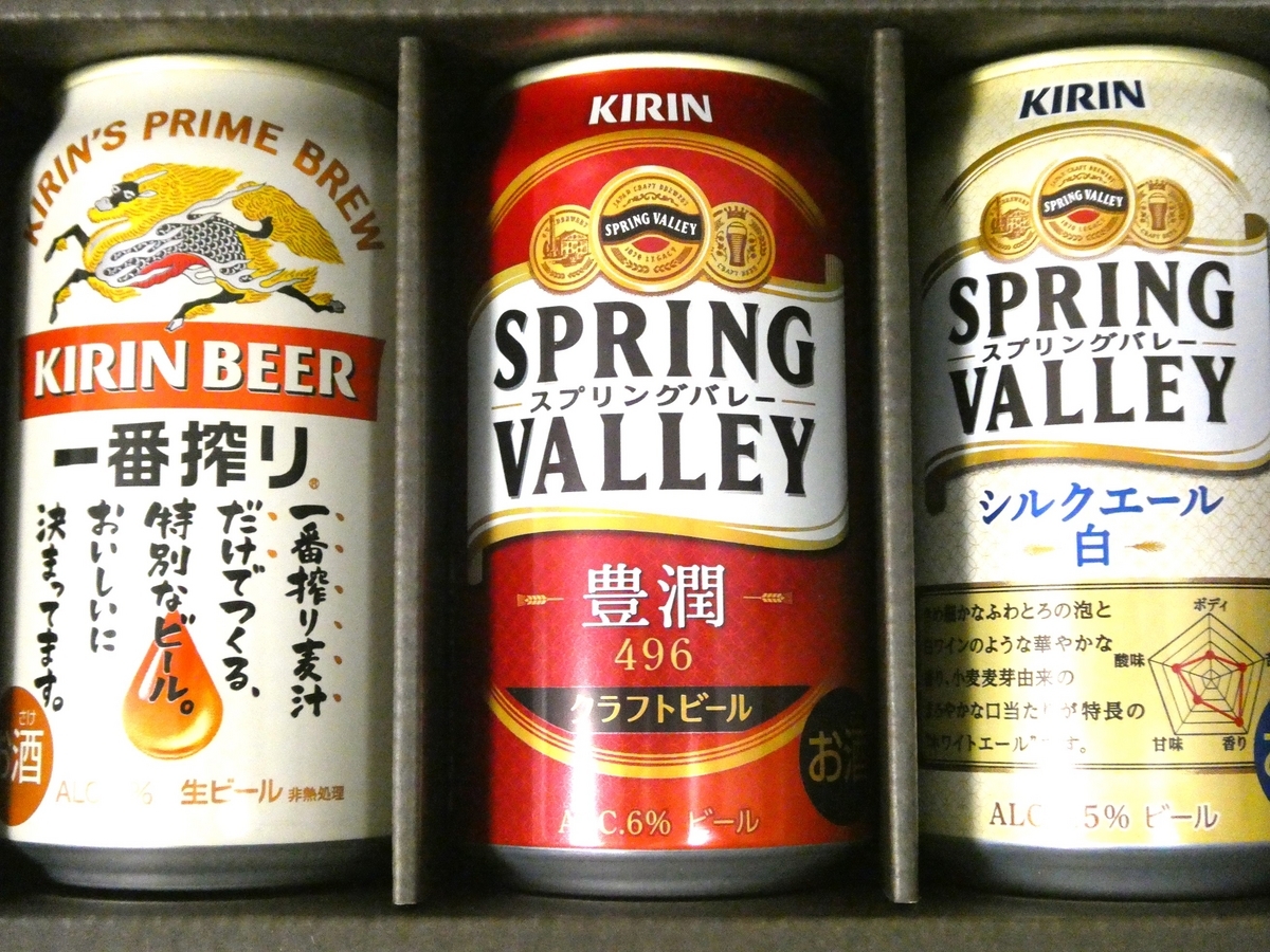 アルコール度数は一番搾り5%、スプリングバレー豊潤6%、シルクエール5.5%。