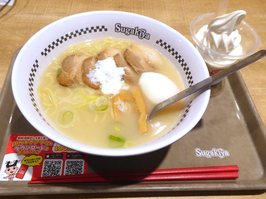 2025-03-08 スガキヤ スーちゃん祭 半額祭 2025 ◎ぉいしぃ(愛知県一宮市) #飲食店 #スガキヤ #ラーメン #菓子・デザート 今年もスーちゃん祭、スガキヤ半額祭が開催されたので参加してきた。 今年は地域によって開催日が異なっている。 メニューも3つに絞られ、効率化が図られている。 アプリ会員には先着プレゼントもあったが、当然終了していた。 Cセット 特製ラーメン+カップソフトクリーム 410円 温玉とチャーシューが多い特製ラーメン。 ソフトクリーム 今年もスーちゃん祭を楽しめた。 おいしかった。 ごちそうさまでした。